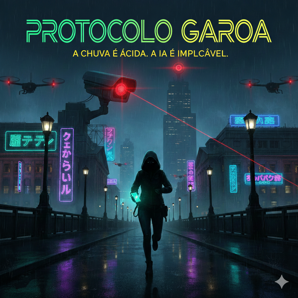 Protocolo Garoa é uma experiência de Ficção Interativa e Novela Visual onde cada decisão é crucial: